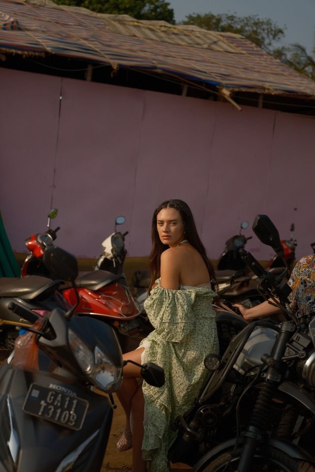 שמלת קיץ קלילה בגוון לבן שמקרינה ניקיון ורוך עם חזה סרוג בעבודת יד, כתפיות דקות וקשרי גדילים נופלים שמשלימים את המראה בחן הבד הנושם משתלב עם עיטורי פרנזים עדינים בקו התחתון ומוסיף תנועה רכה ורומנטית לכל צעד אידאלית ליום חוף, שקיעה בים או סתם הרגשה של חופש בכל מקום