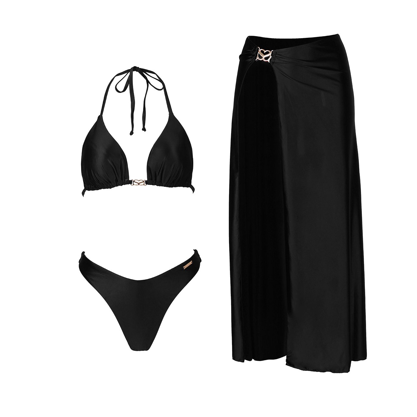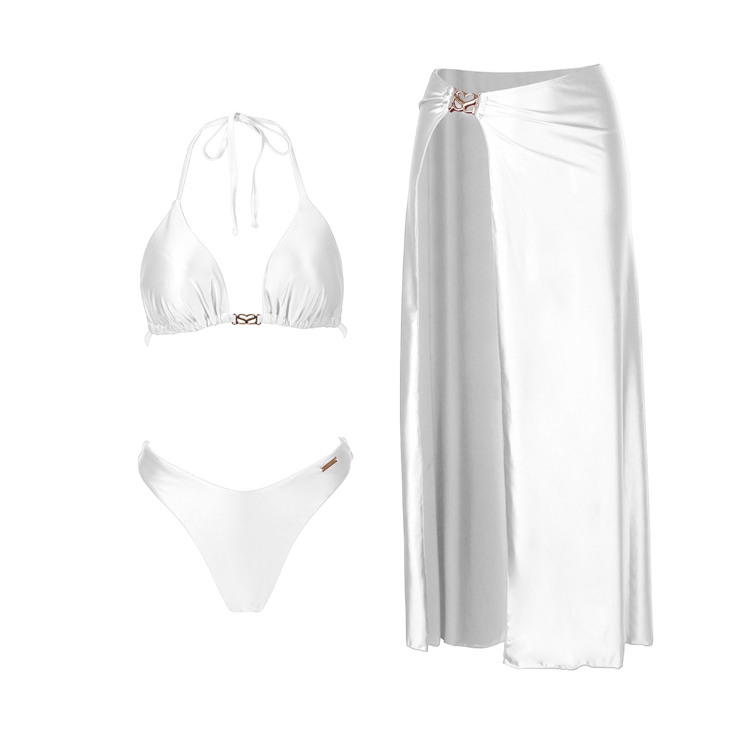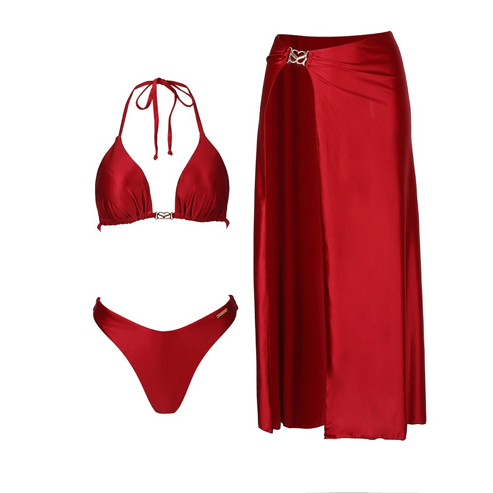 סט המורכב מחזיית ביקיני , תחתון וחצאית תואמת עם שסע.