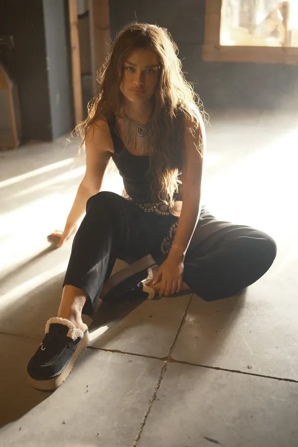 כפכפי עור קים שחורות